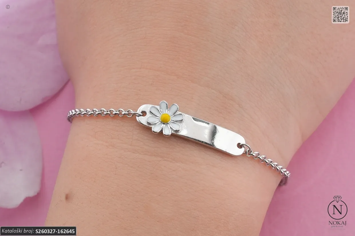 Dječji nakit – siguran i nježan dizajn savršen za najmlađe.: srebrna dječja narukvica finoće 925/1000 s motivom cvijeća.