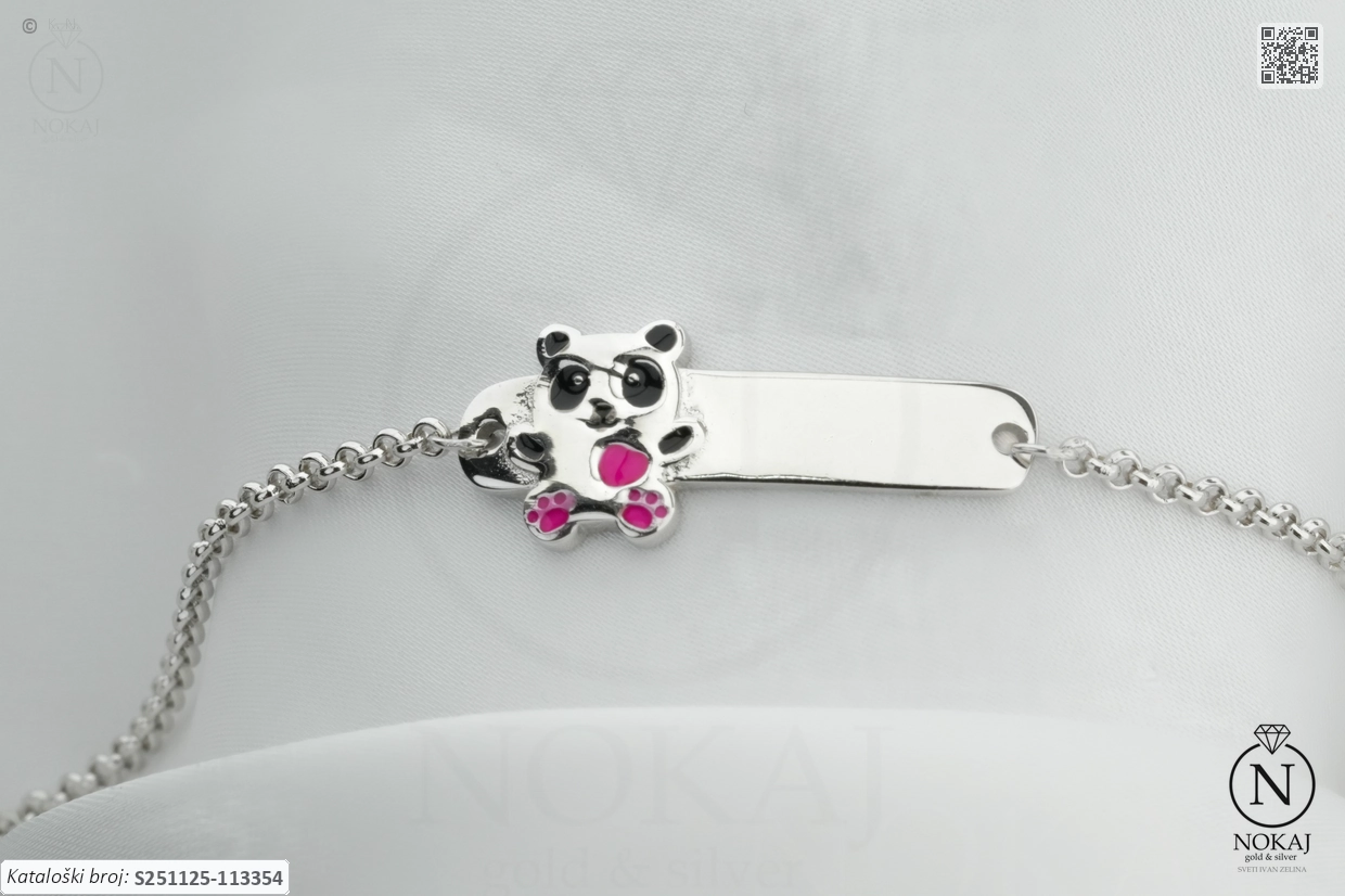 Nježni dječji nakit – izrađen tako da ostane udoban i tijekom igre: srebrna dječja narukvica čistoće 925/1000 s motivom stiliziranog crtićnog obilježja.