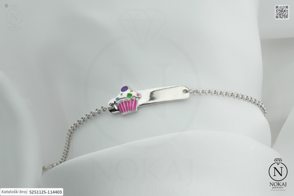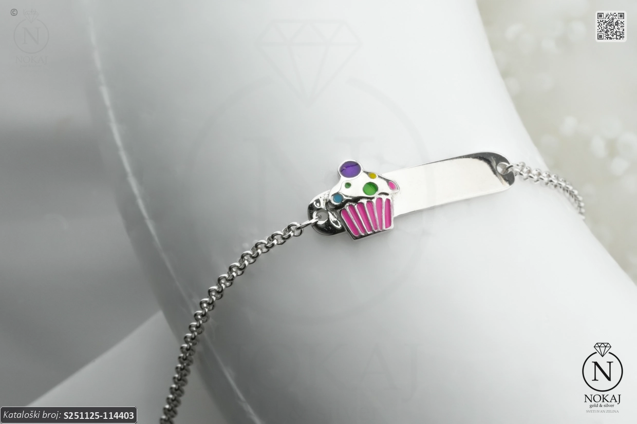 Predivan dječji nakit – izrađen tako da nježno pristaje dječjoj koži: srebrna dječja narukvica finoće 925/1000 s motivom stiliziranog crtićnog obilježja.