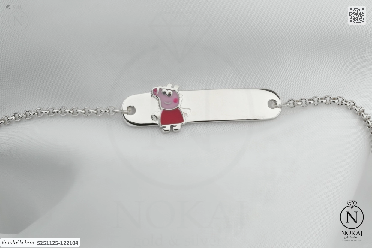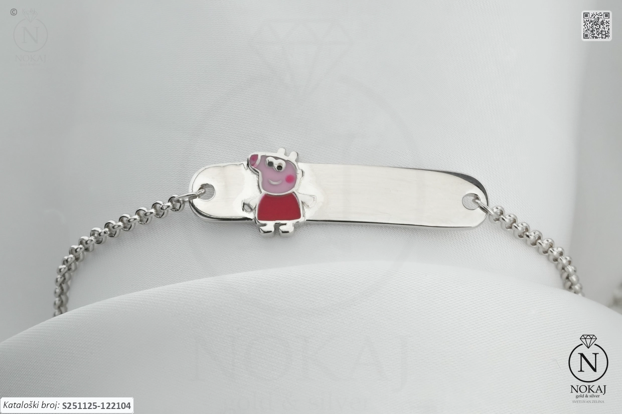 Lagani dječji nakit – prilagođen malim korisnicima koji vole udobnost i jednostavnost: srebrna dječja narukvica finoće 925/1000 s motivom stiliziranog crtićnog obilježja.