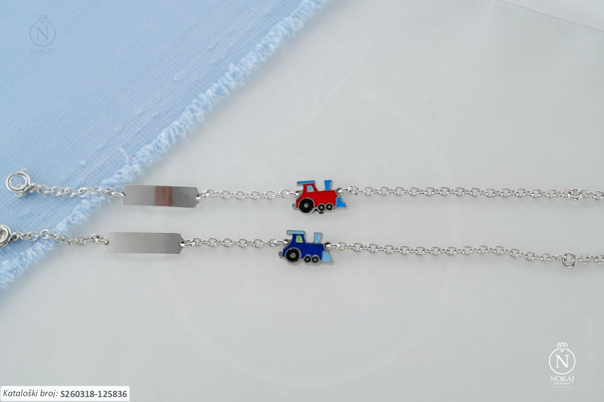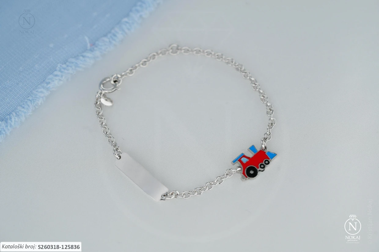 Dječji nakit – nježan i lagan dodatak idealan za djecu.: srebrna dječja narukvica vrhunske finoće 925/1000 s motivom crveni vlak.