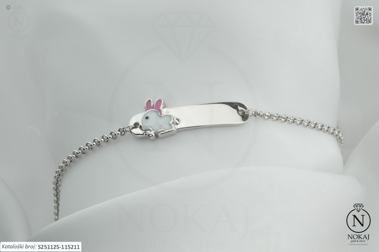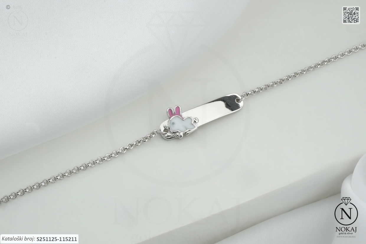 Lagani dječji nakit – izrađen da ostane udoban i nakon dugog nošenja: srebrna dječja narukvica čistoće 925/1000 s motivom zeke.
