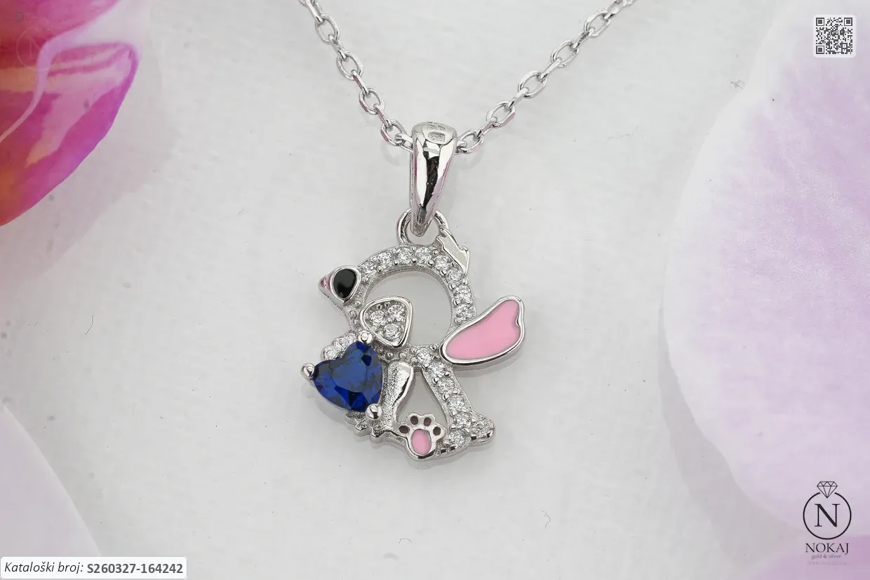 Dječji nakit – nježan i lagan dodatak idealan za djecu.: srebrna dječja ogrlica vrhunske finoće 925/1000 s motivom stiliziranog crtićnog obilježja.