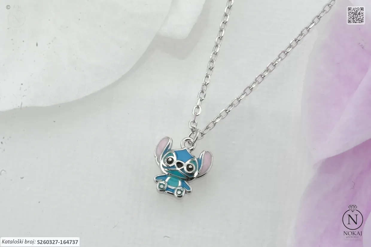 Dječji nakit – siguran i nježan dizajn savršen za najmlađe.: srebrna dječja ogrlica prepoznatljive finoće 925/1000 s motivom stiliziranog crtićnog obilježja.