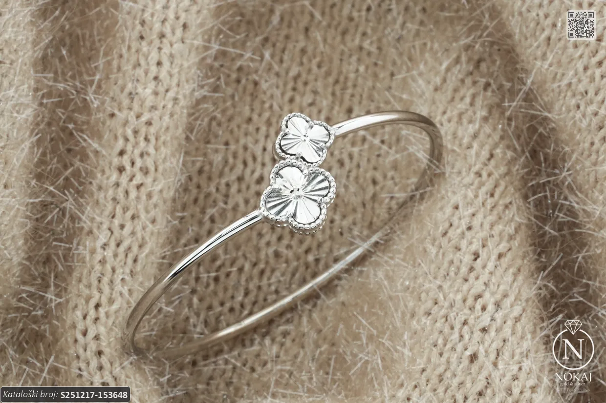 Srebrna narukvica finoće 925/1000 s motivom djetelina – simbol nade i novih početaka..