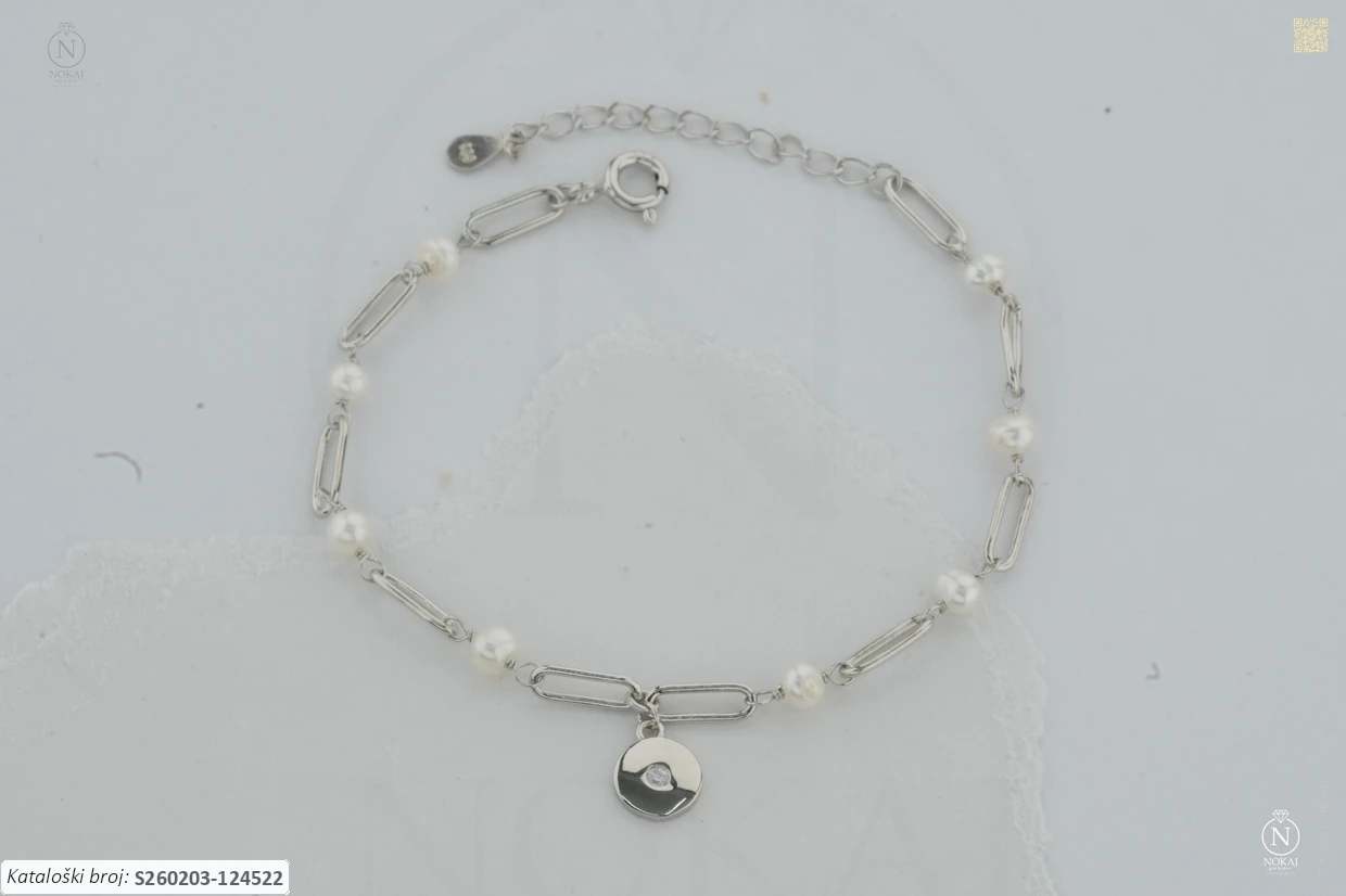 Srebrna narukvica visoke čistoće 925/1000, ukrašena cirkonom.