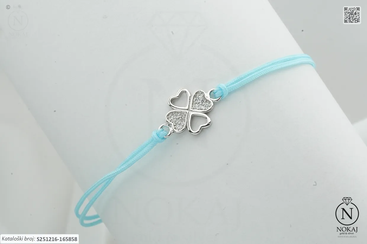 Srebrna narukvica čistoće 925/1000, ukrašena cirkonima s motivom djetelina – simbol nade i novih početaka..