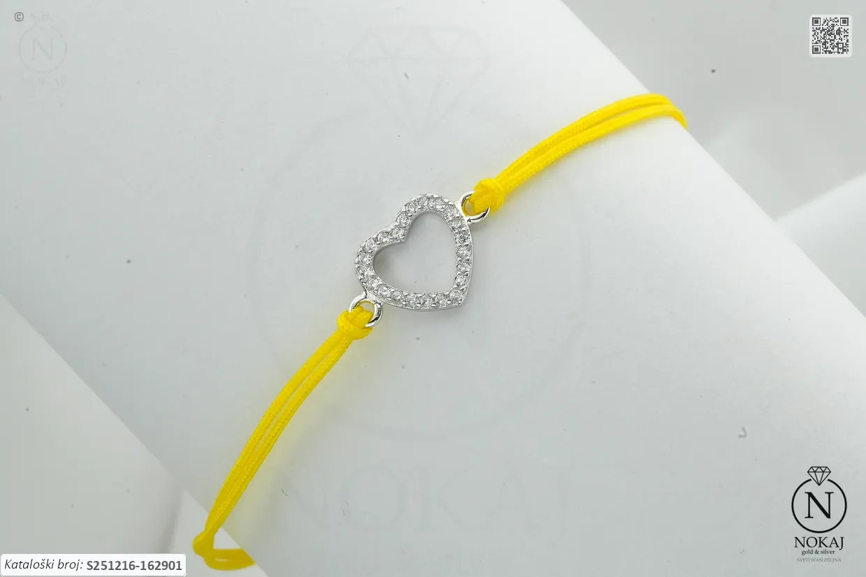 Srebrna narukvica finoće 925/1000, ukrašena cirkonima s motivom srca.