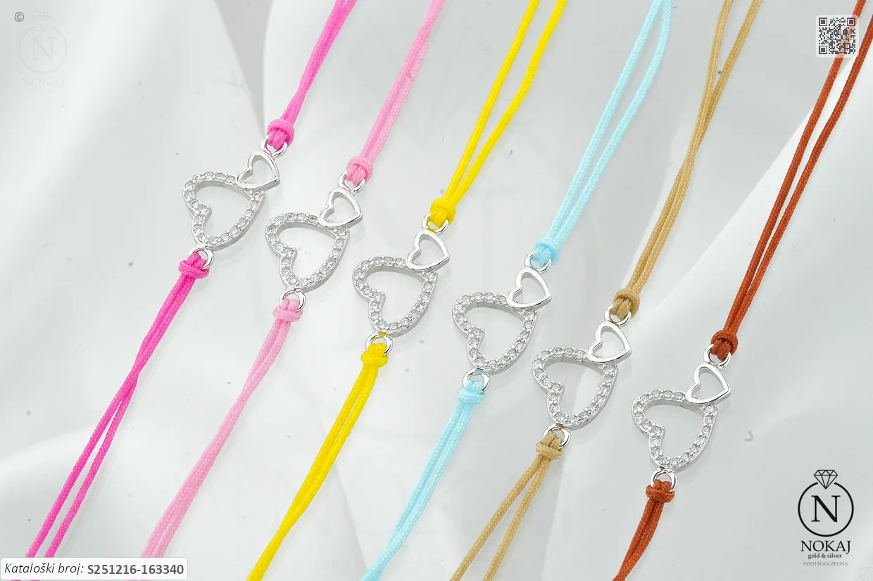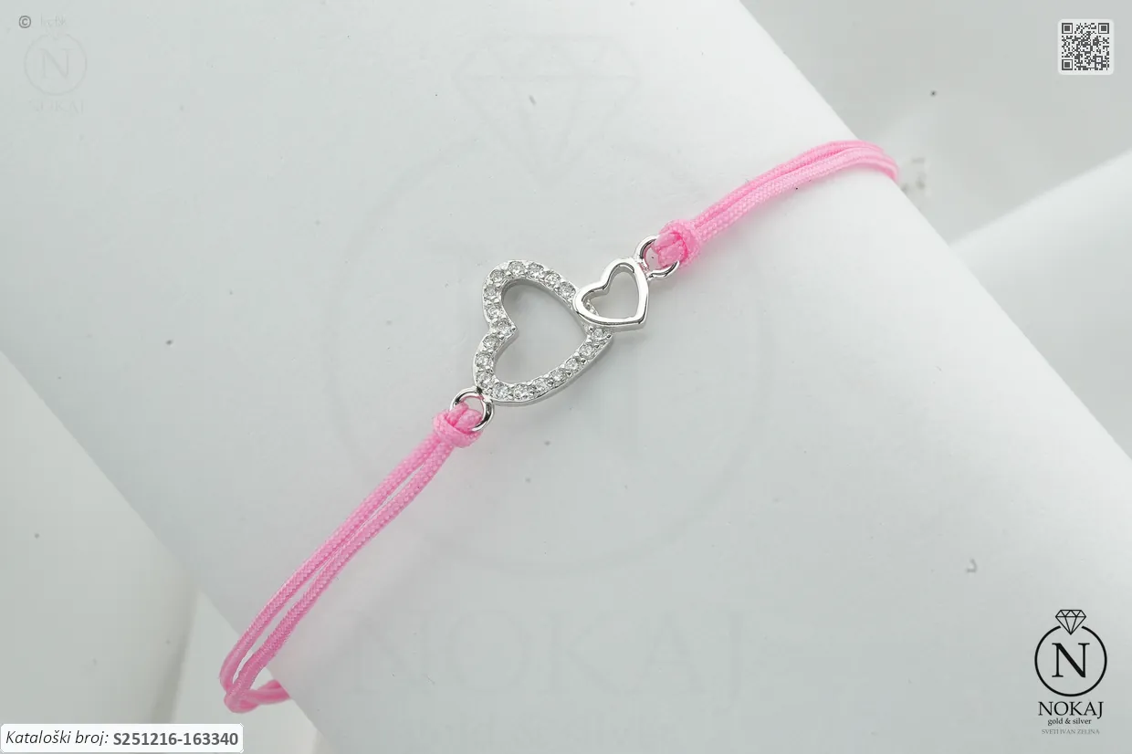 Srebrna narukvica finoće 925/1000, ukrašena cirkonima s motivom srca – predstavlja ljubav, toplinu i iskrenost..
