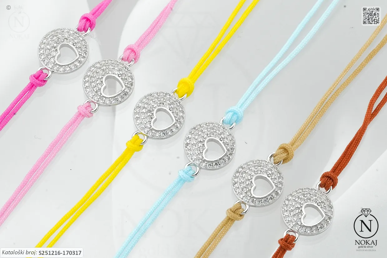 Srebrna narukvica čistoće 925/1000, ukrašena cirkonima s motivom srce – simbol ljubavi i topline, savršen za izražavanje osjećaja..