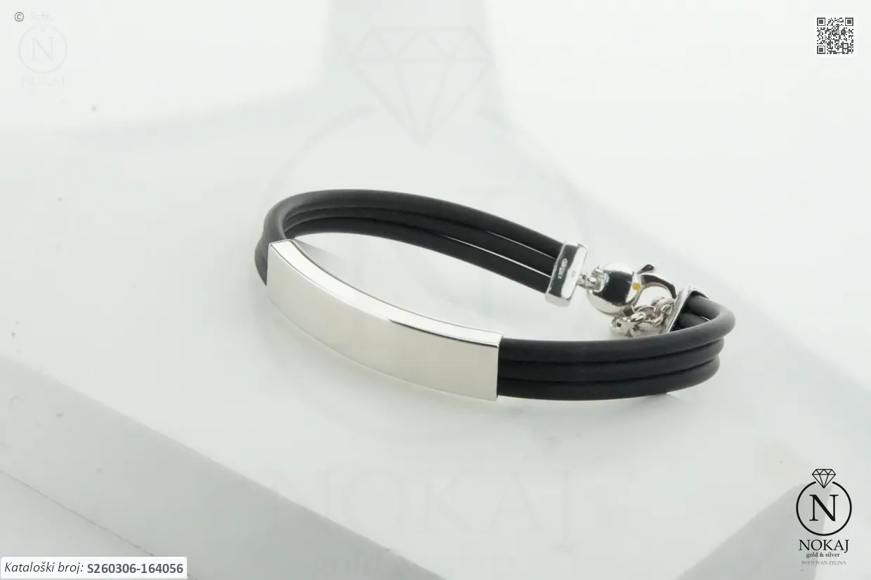 Narukvica:, duljina: 21+4 cm, širina: 10.0 mm, pločica: 43x10 mm, debljina: 4.2 mm • Srebrna narukvica sa kaučukom