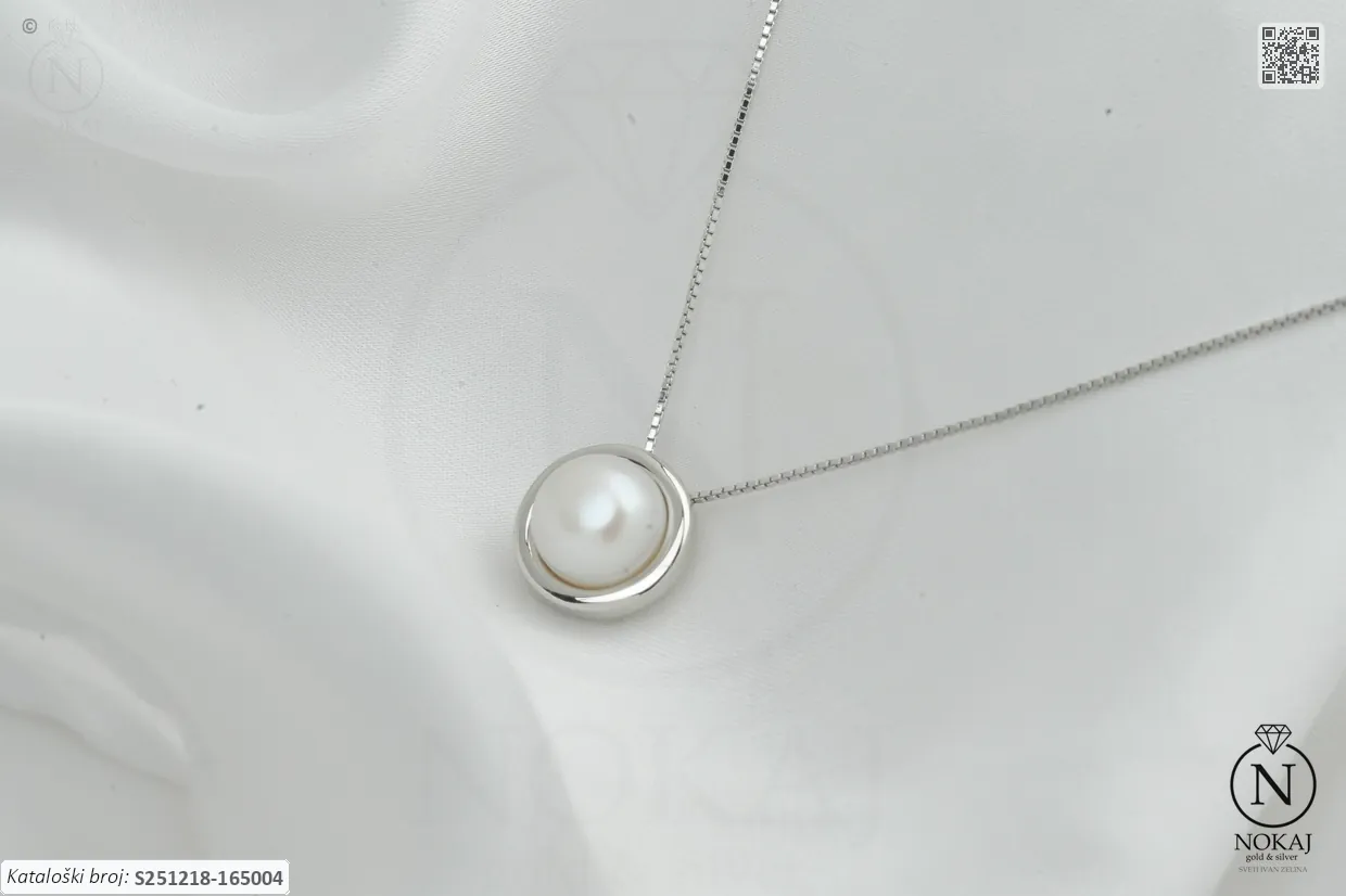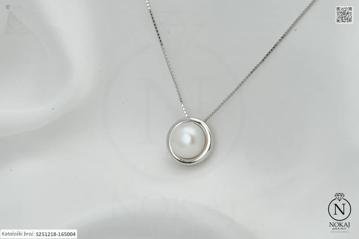 Srebrna ogrlica finoće 925/1000, ukrašen kremastim biserom.