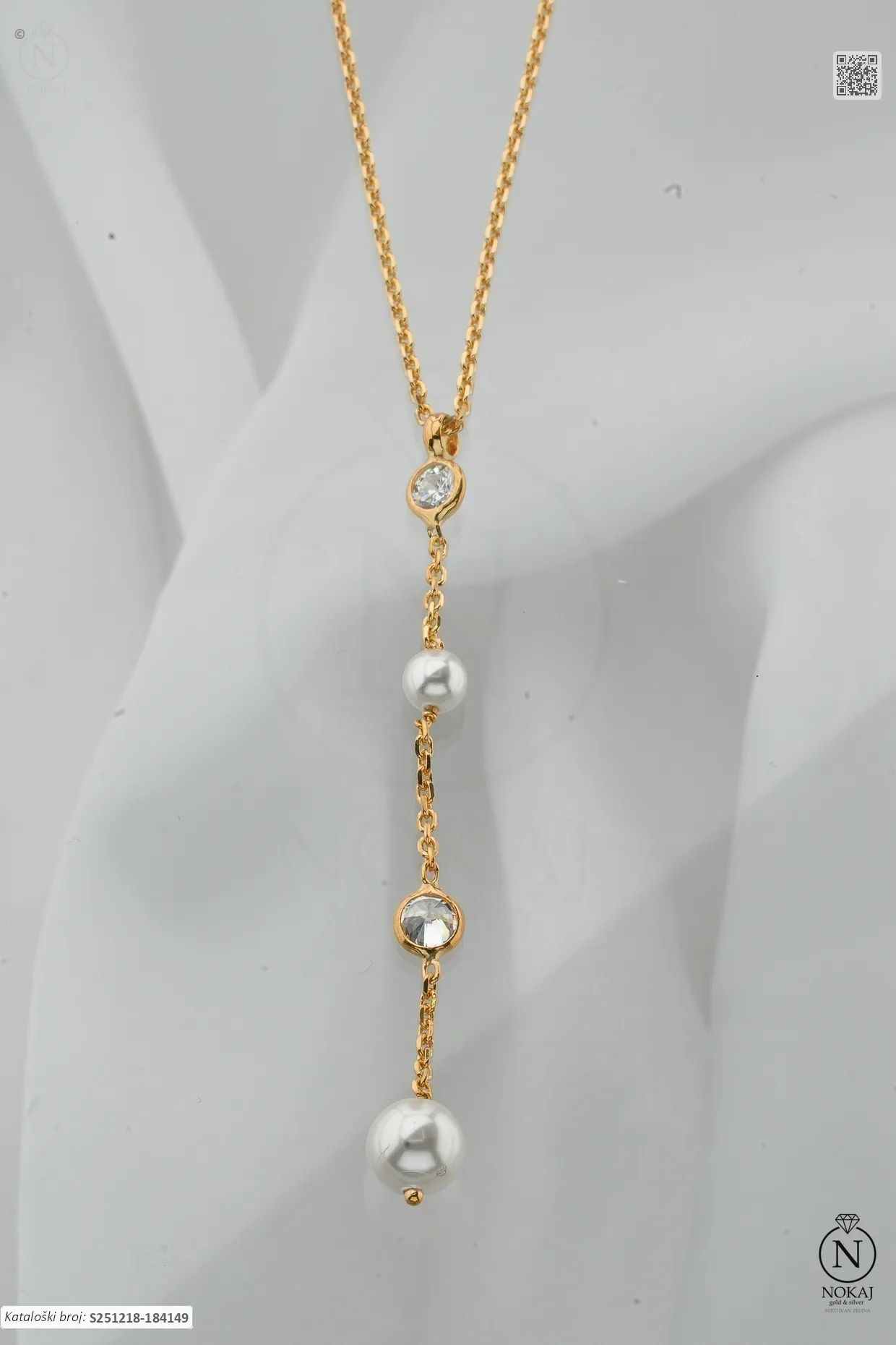 Srebrna ogrlica vrhunske finoće 925/1000, pozlaćen slojem 18k žutog zlata, ukrašen cirkonima i biserima.