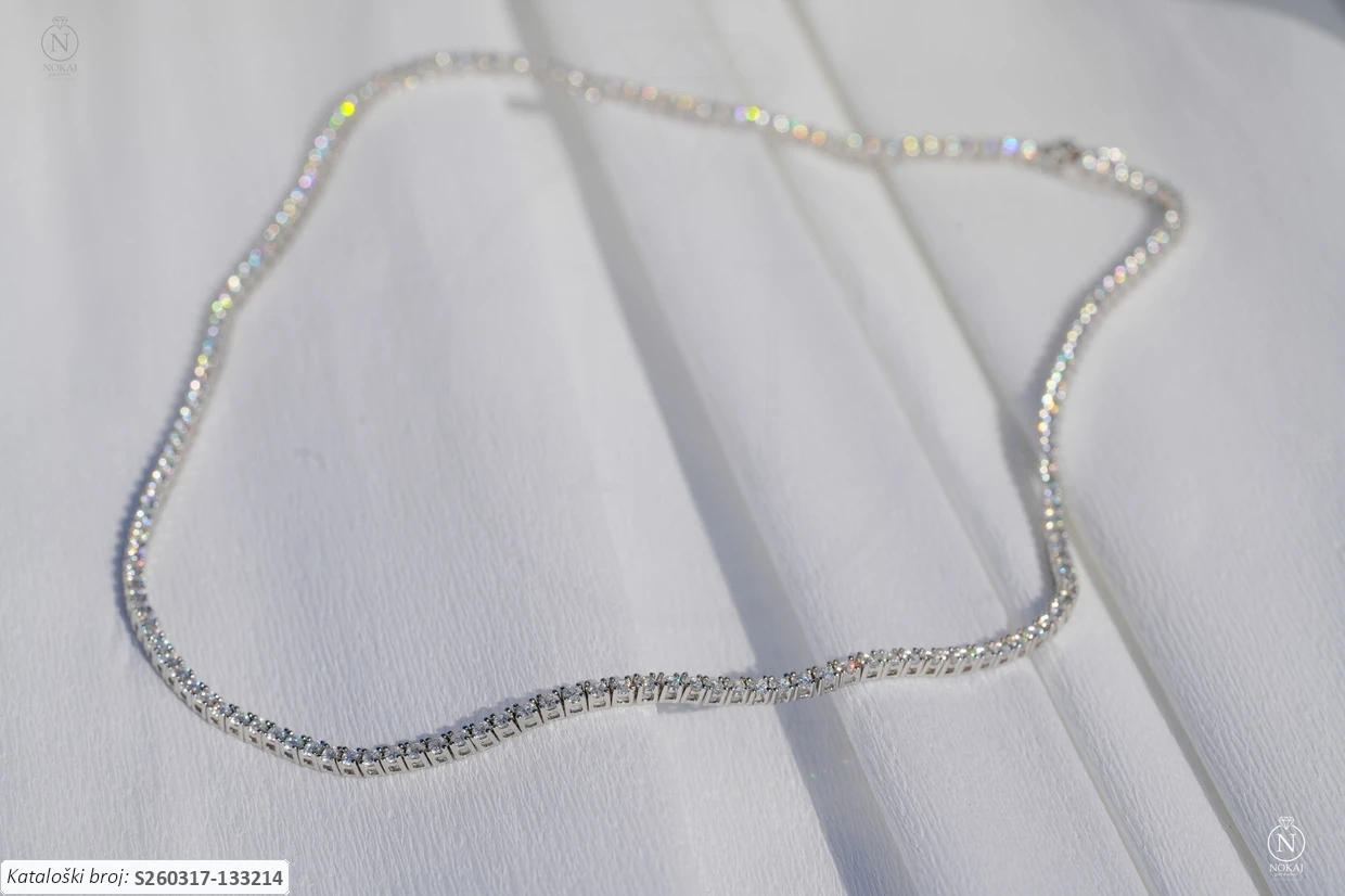Srebrna ogrlica finoće 925/1000, ukrašena cirkonima.
