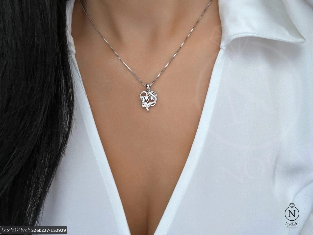 Srebrna ogrlica čistoće 925/1000, ukrašena cirkonima s motivom srca – klasični simbol duboke emocije i nježnosti..