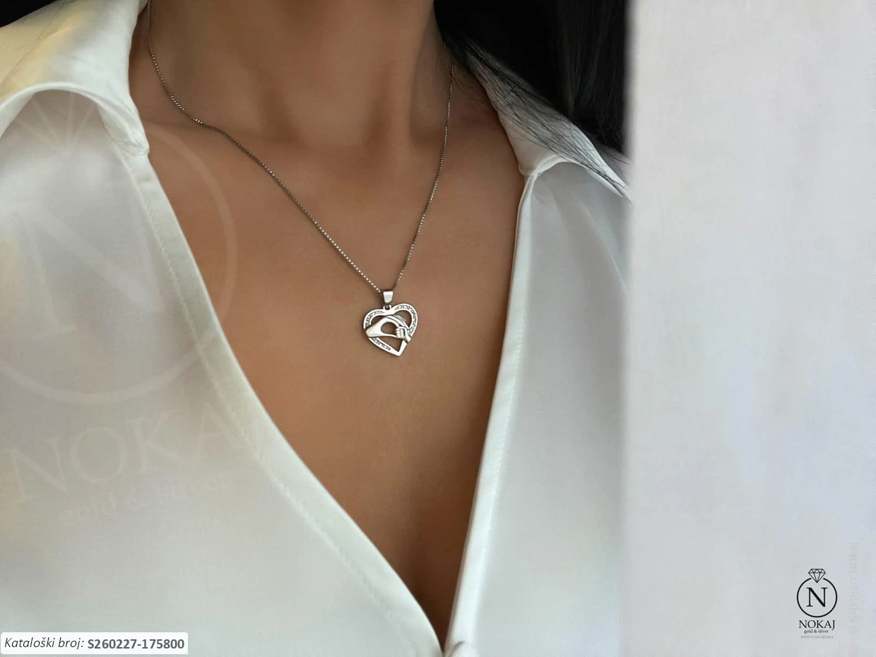 Srebrna ogrlica čistoće 925/1000, ukrašena cirkonima s motivom srce – simbol ljubavi i topline, savršen za izražavanje osjećaja..