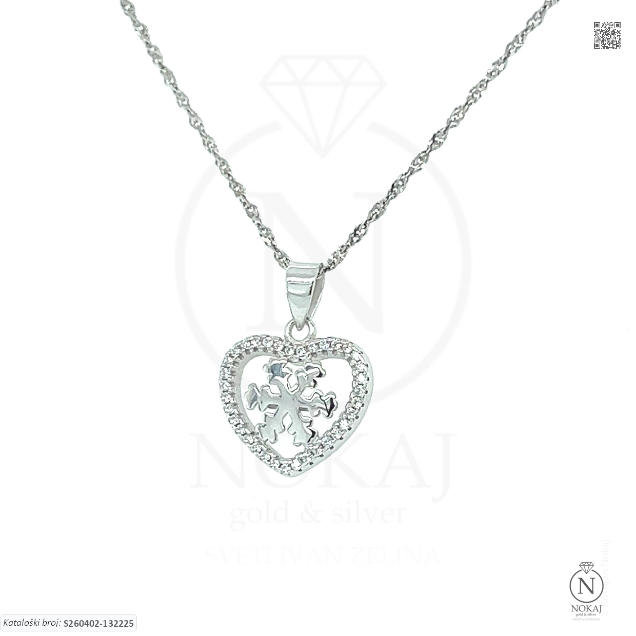 Srebrna ogrlica čistoće 925/1000, ukrašena cirkonima s motivom srca.