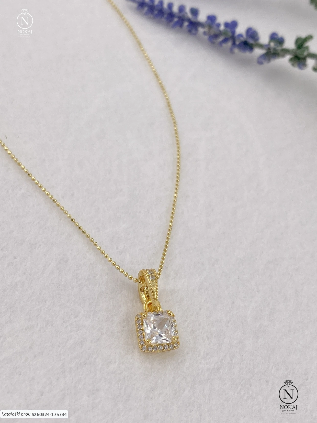Srebrna ogrlica čistoće 925/1000, pozlaćena slojem 18k žutog i ružičastog zlata, ukrašena cirkonom.