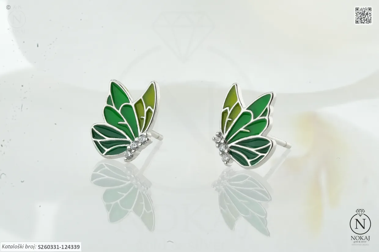Dječji nakit – dizajniran s posebnom pažnjom na sigurnost i udobnost.: srebrne dječje naušnice finoće 925/1000 s motivom leptira.
