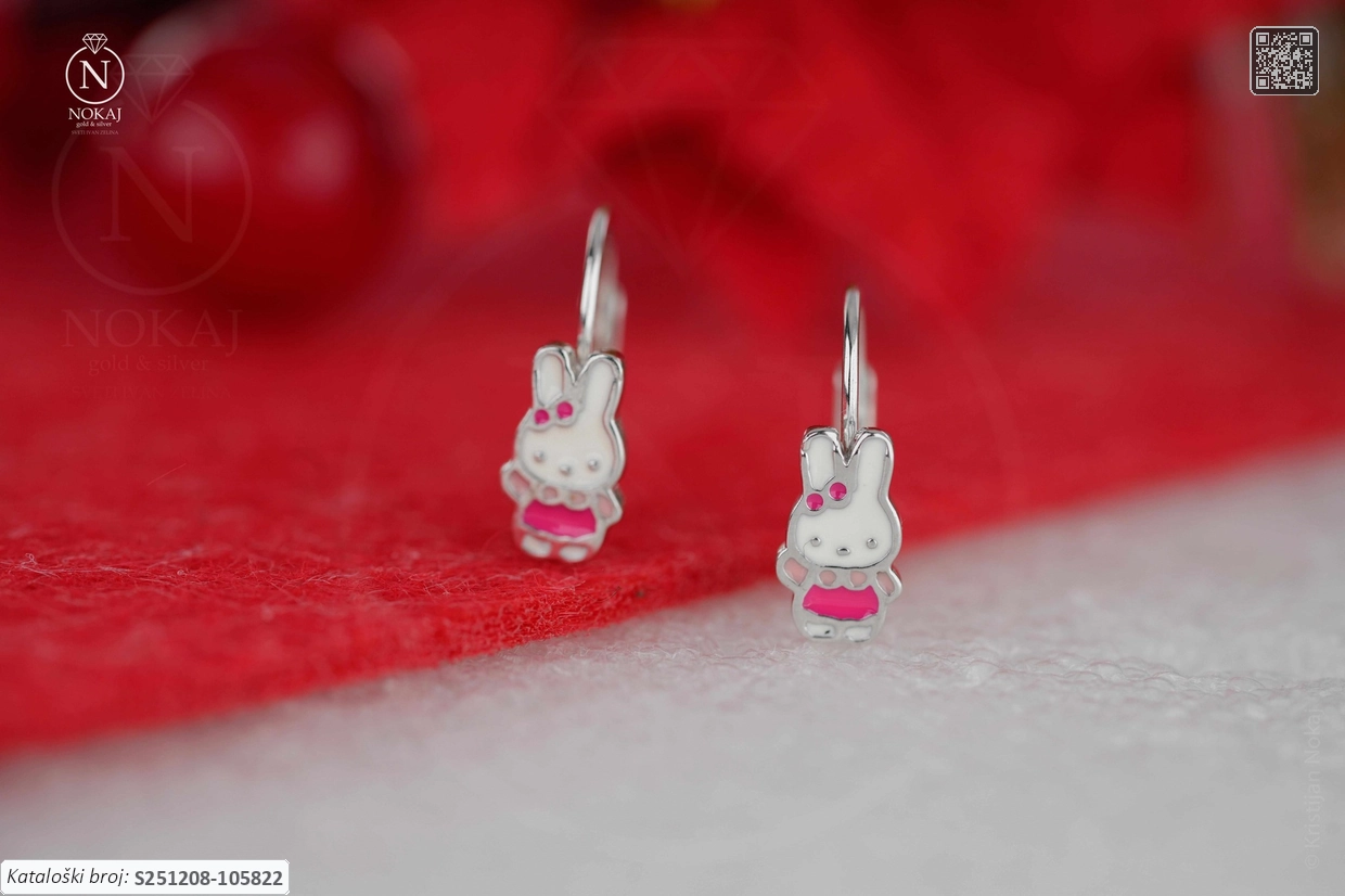 Dječji nakit – nježan i lagan dodatak idealan za djecu.: srebrne dječje naušnice visoke čistoće 925/1000 s motivima zeke, mačke i stiliziranog crtićnog obilježja.