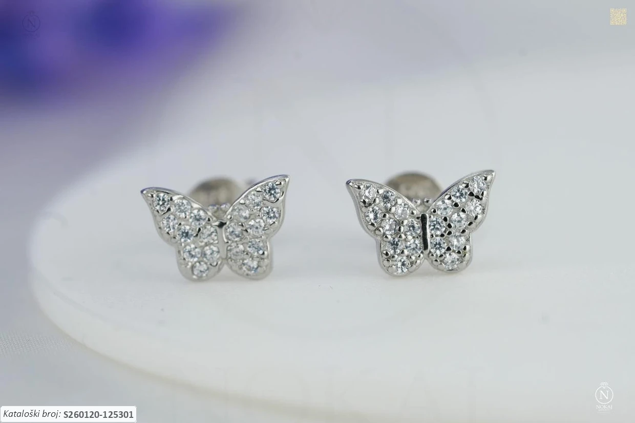 Srebrne naušnice visoke čistoće 925/1000 s motivom leptira – simbol lagane ljepote i životne promjene..