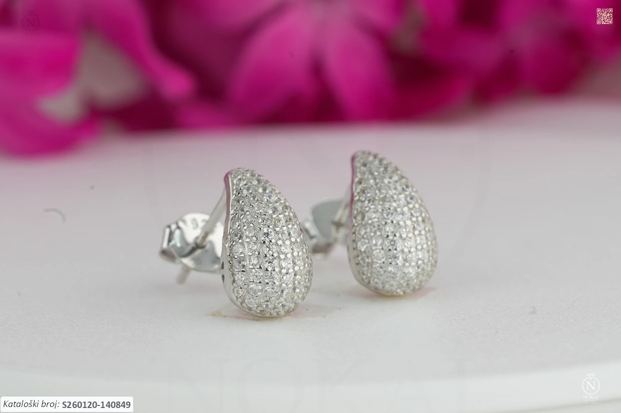 Srebrne naušnice vrhunske finoće 925/1000, ukrašene cirkonima.