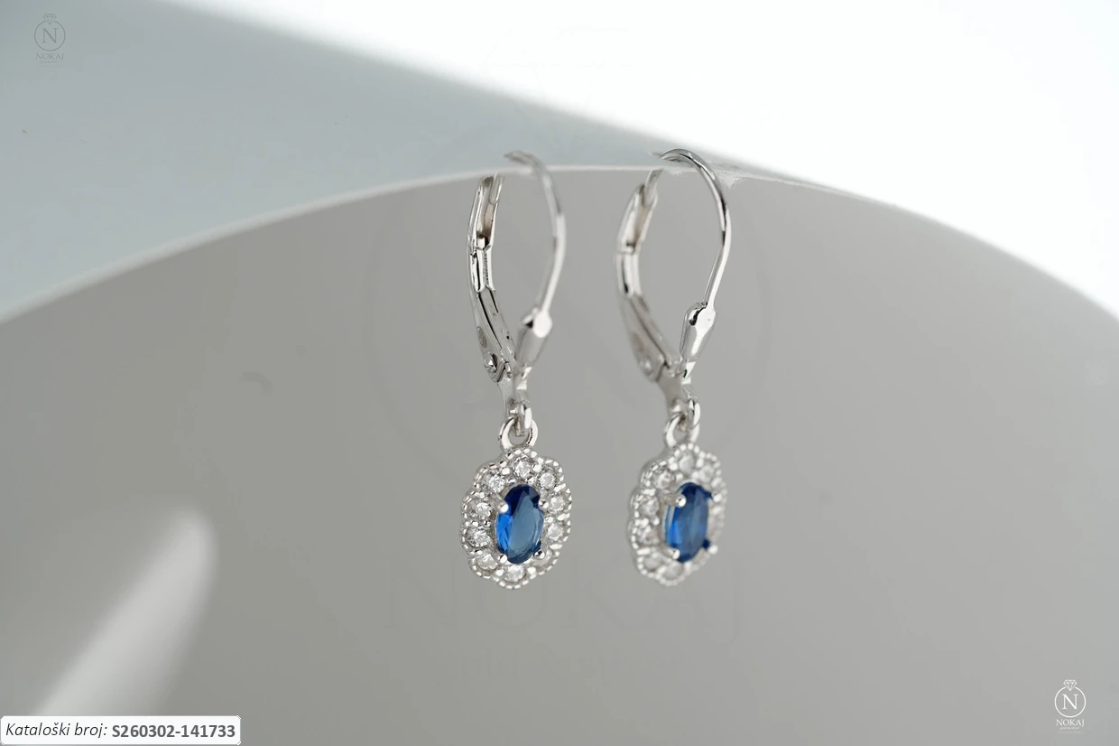 Srebrne naušnice prepoznatljive finoće 925/1000, ukrašene cirkonima.