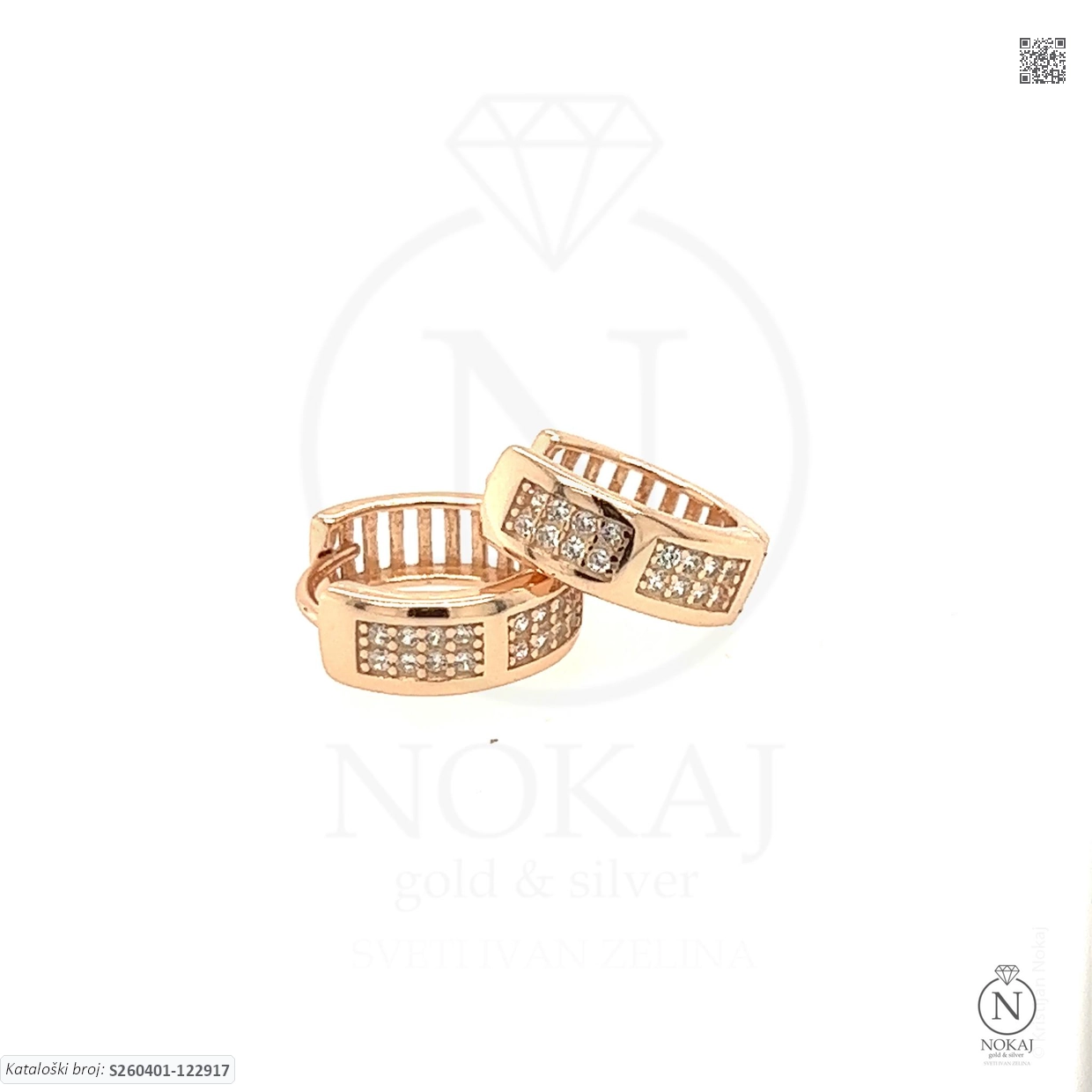 Srebrne naušnice čistoće 925/1000, pozlaćene slojem 18k ružičastog zlata, ukrašene cirkonima.