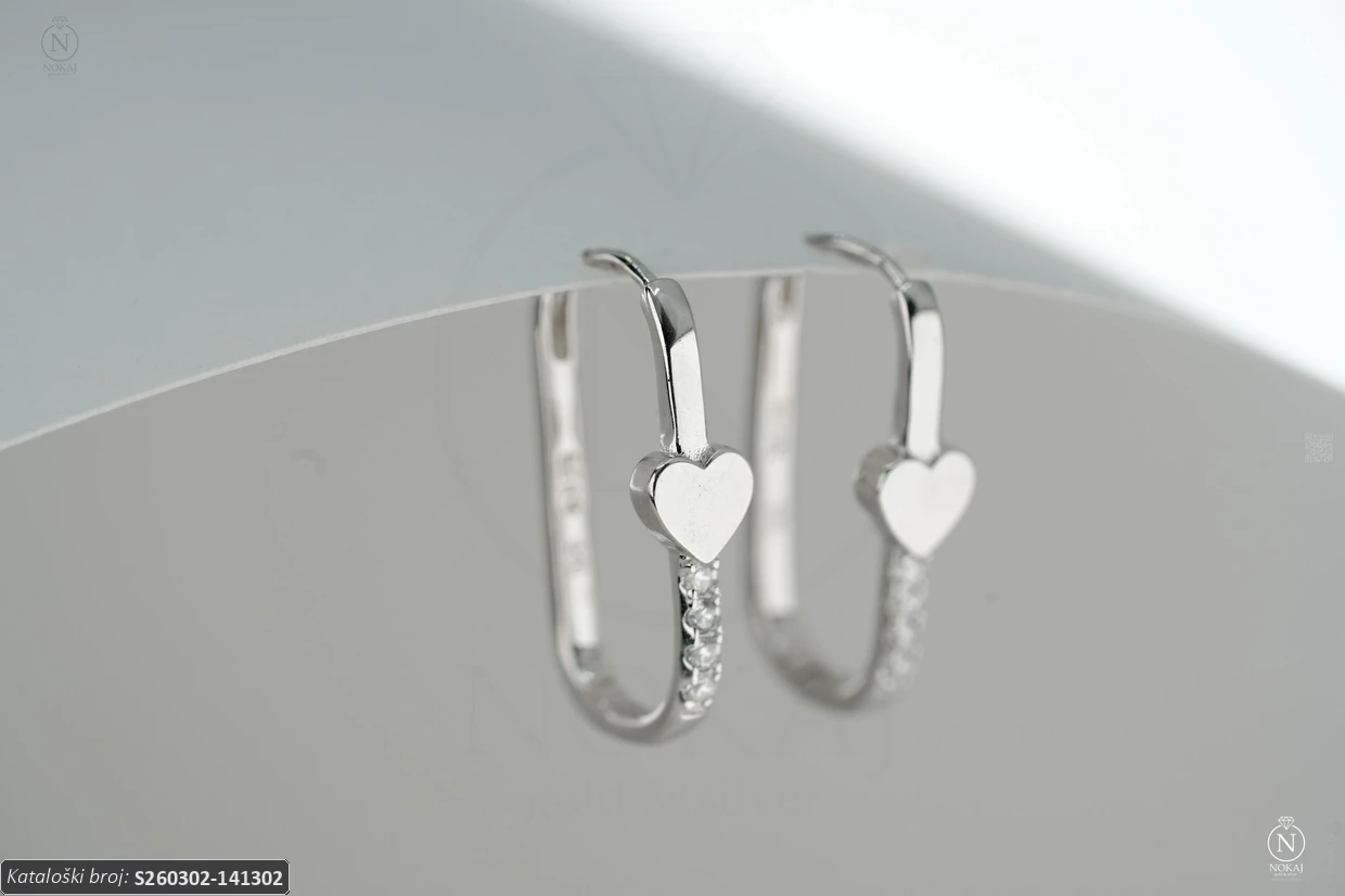 Srebrne naušnice čistoće 925/1000, ukrašene cirkonima s motivom srca – klasični simbol duboke emocije i nježnosti..