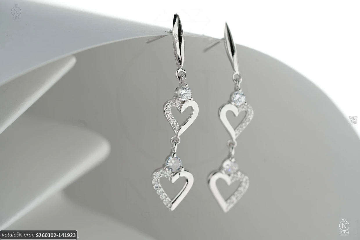 Srebrne naušnice visoke čistoće 925/1000, ukrašene cirkonima s motivom srca – predstavlja ljubav, toplinu i iskrenost..