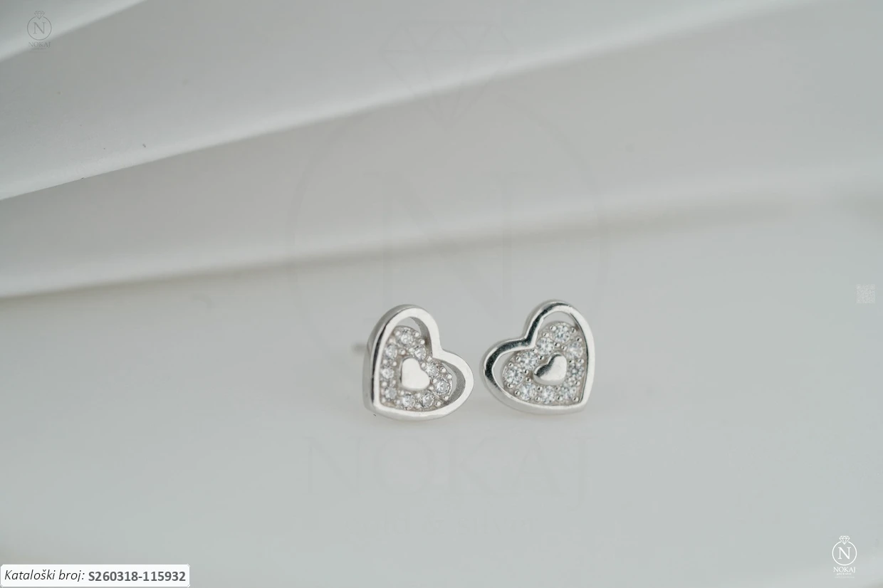 Srebrne naušnice finoće 925/1000, ukrašene cirkonom s motivom srca – predstavlja ljubav, toplinu i iskrenost..