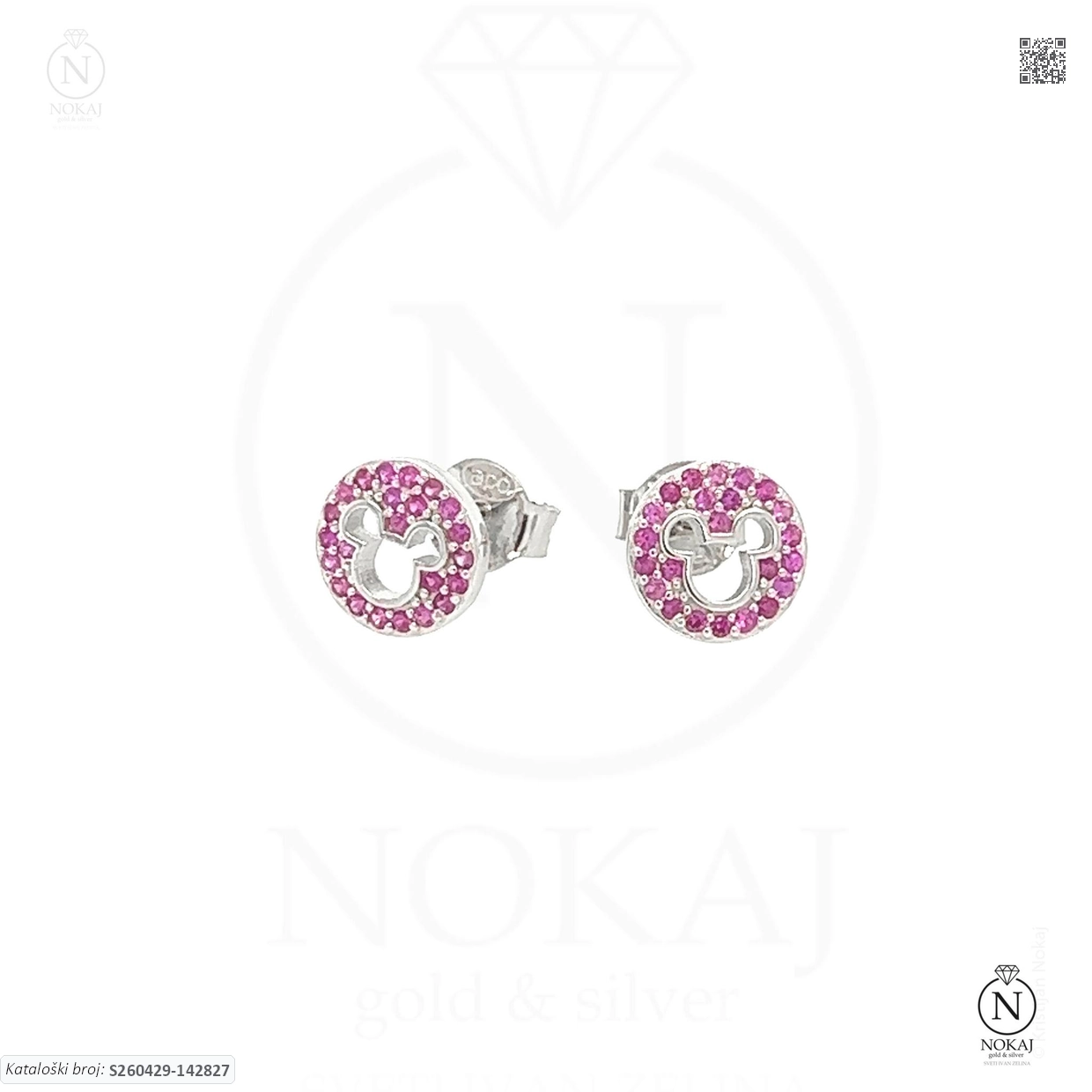 Srebrne naušnice čistoće 925/1000, ukrašene cirkonom s motivom stiliziranog crtićnog obilježja.
