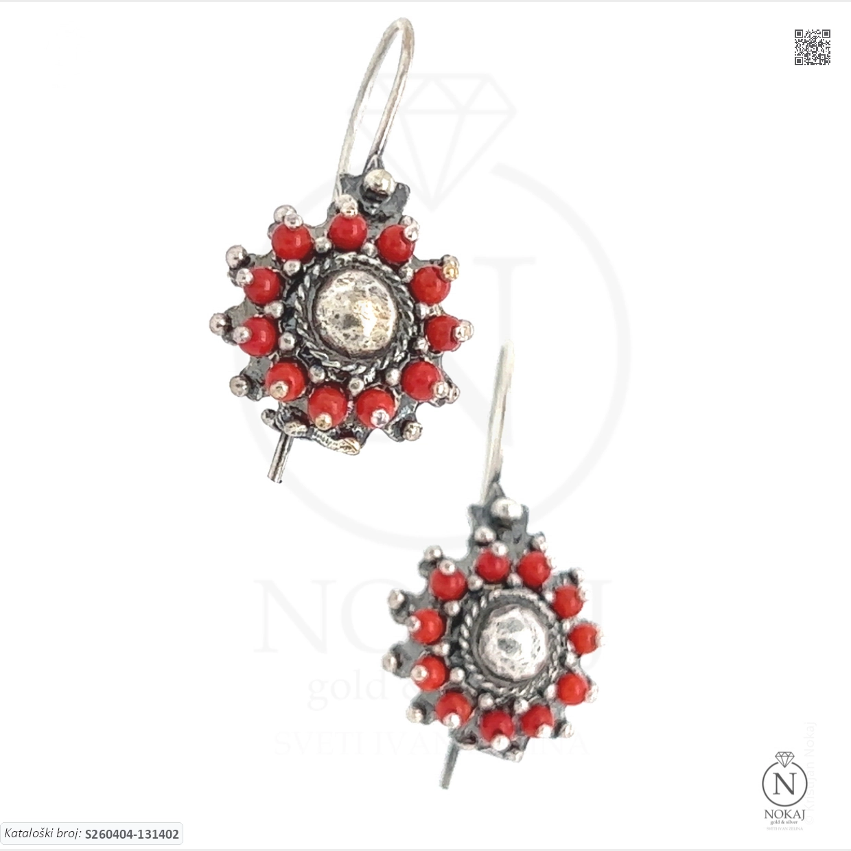 Tradicionalni nakit – simbol poštovanja prema tradiciji i korijenu.: srebrne tradicijske naušnice čistoće 925/1000, ukrašene koraljima s motivom hrvatski tradicijski nakit.