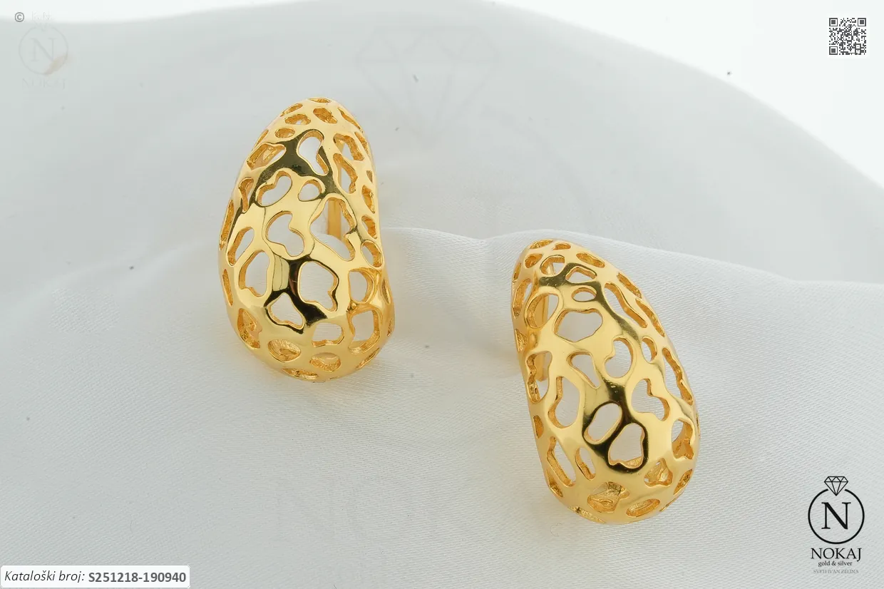 Srebrne naušnice prepoznatljive finoće 925/1000, pozlaćene slojem 18k žutog zlata, ukrašene bezom.