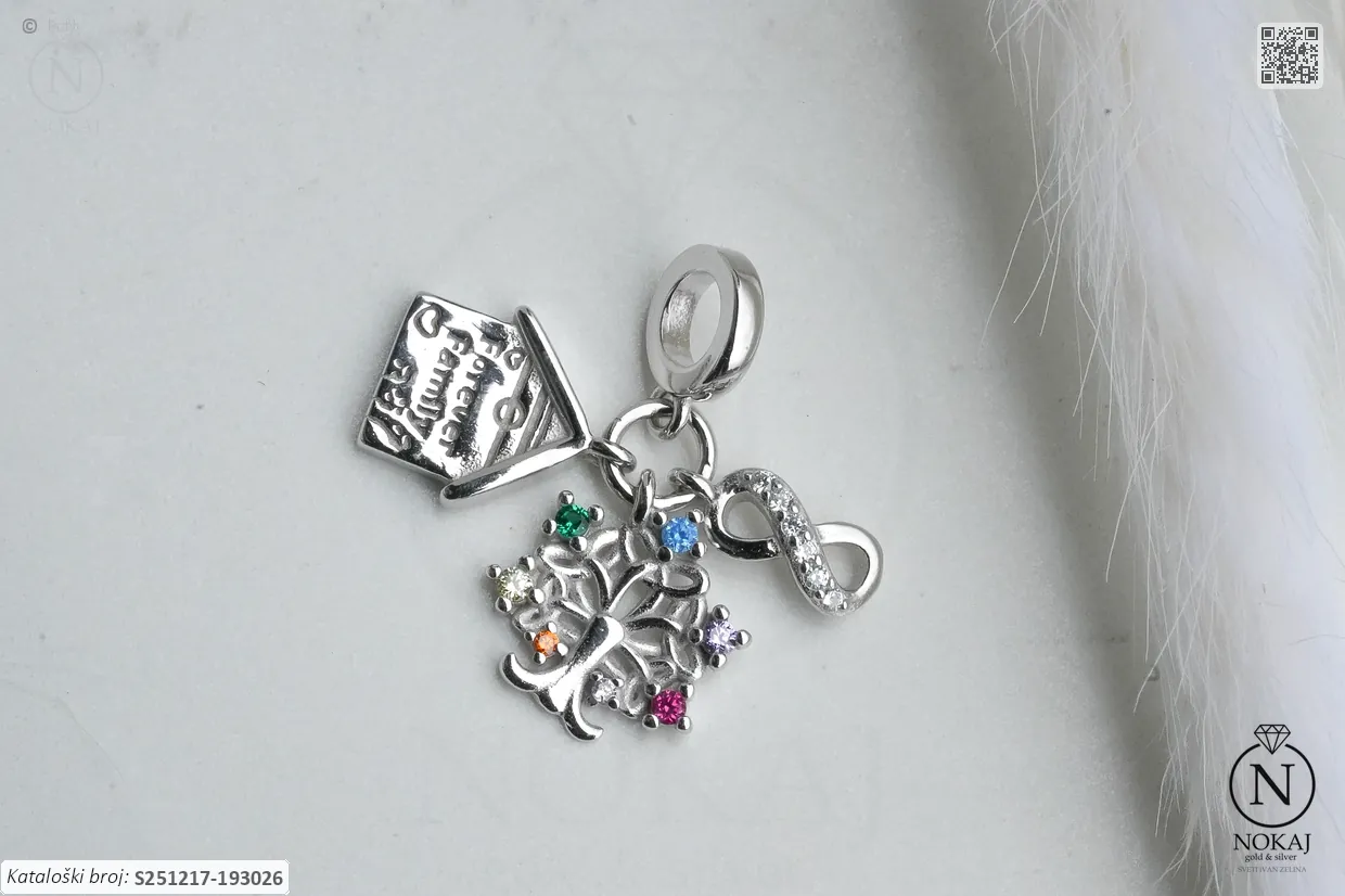 Srebrni privjesak čistoće 925/1000 s motivima beskonačnosti i stabla života.