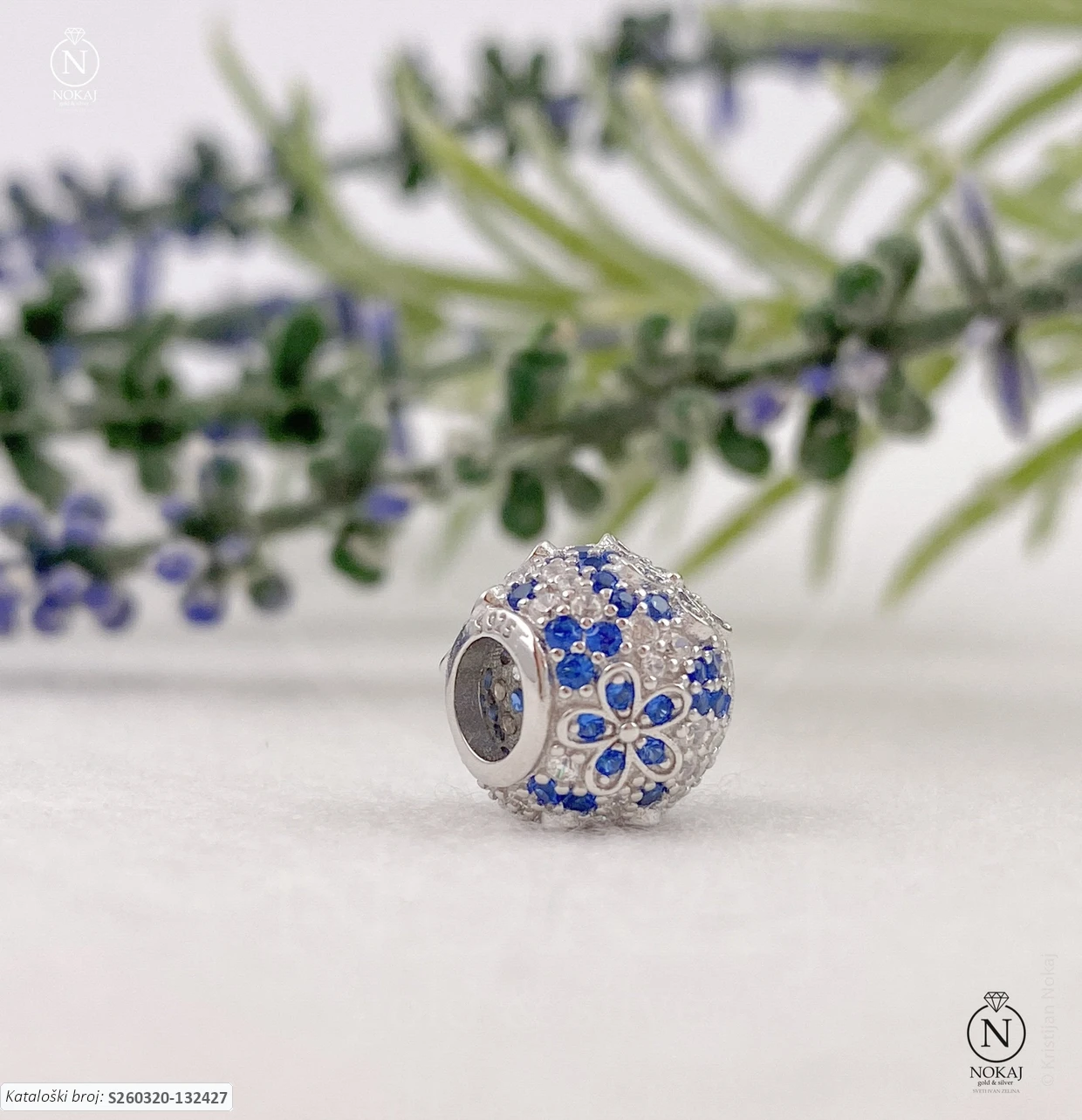 Srebrni privjesak za narukvicu vrhunske finoće 925/1000 s motivom cvijeća.