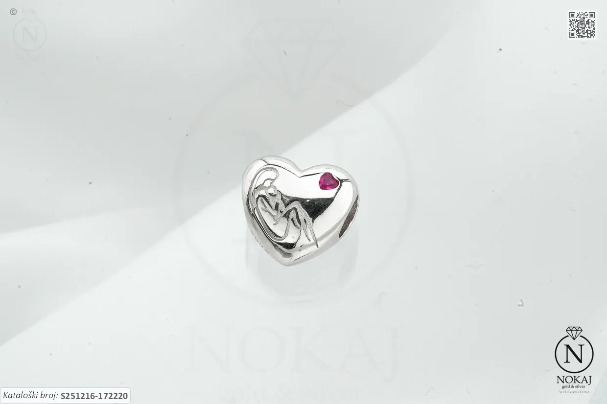 Srebrni privjesak finoće 925/1000, ukrašen bezom s motivom majke i djeteta – znak majčinske ljubavi i zaštite..