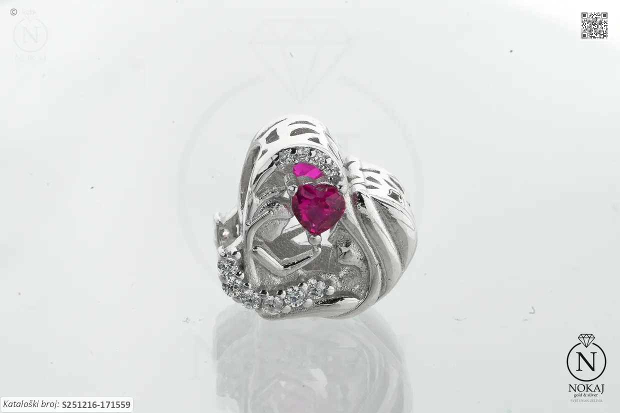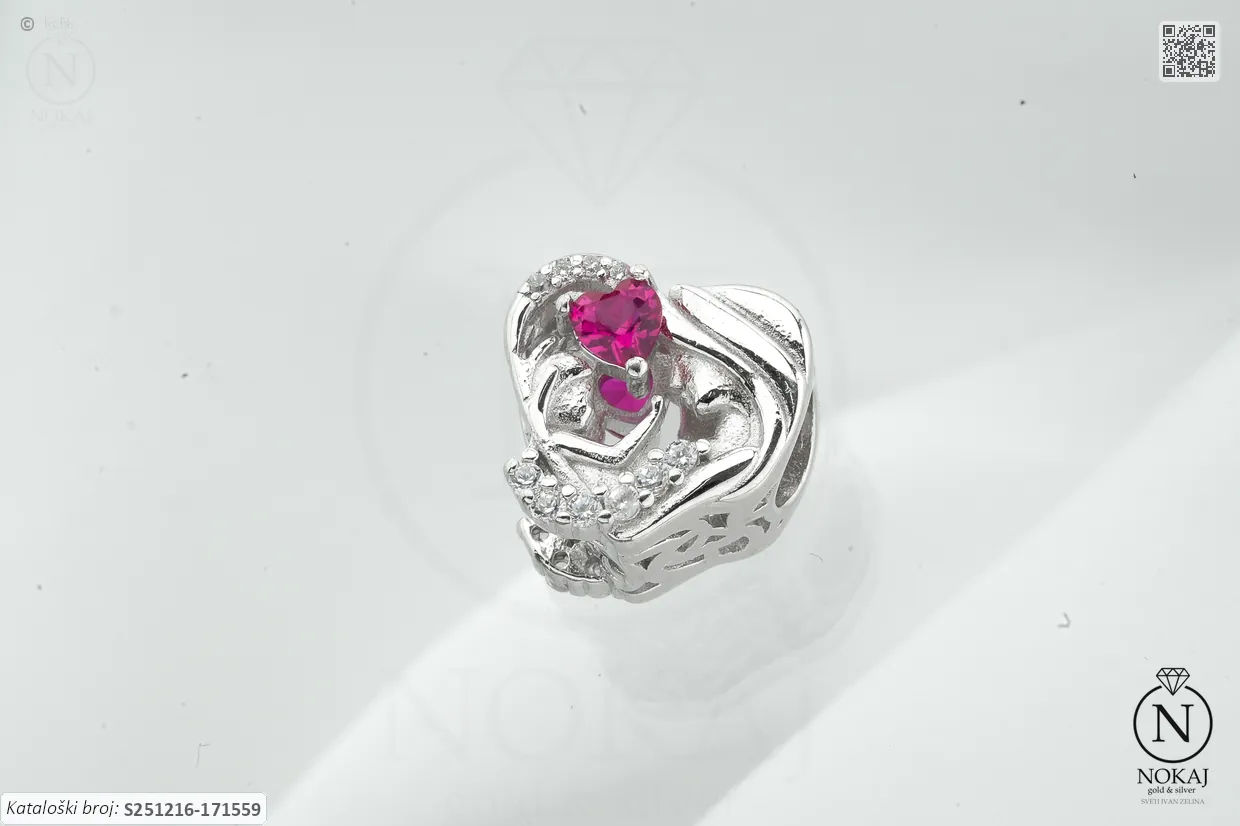 Srebrni privjesak visoke čistoće 925/1000, ukrašen cirkonima s motivom majka i dijete – simbol bezuvjetne ljubavi..