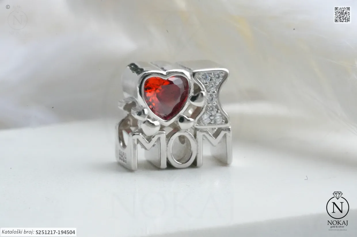 Srebrni privjesak finoće 925/1000, ukrašen cirkonima s motivom mom.
