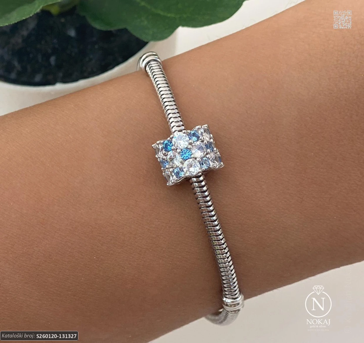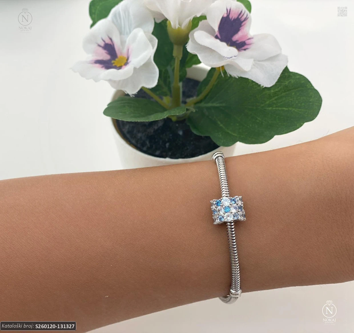 Srebrna narukvica s raskošnim privjeskom u nijansama plave i bijele – savršen početak tvoje unikatne kolekcije.🩵