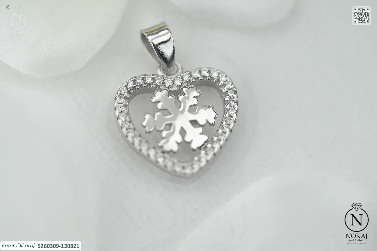 Srebrni privjesak čistoće 925/1000, ukrašen cirkonima s motivom srca.