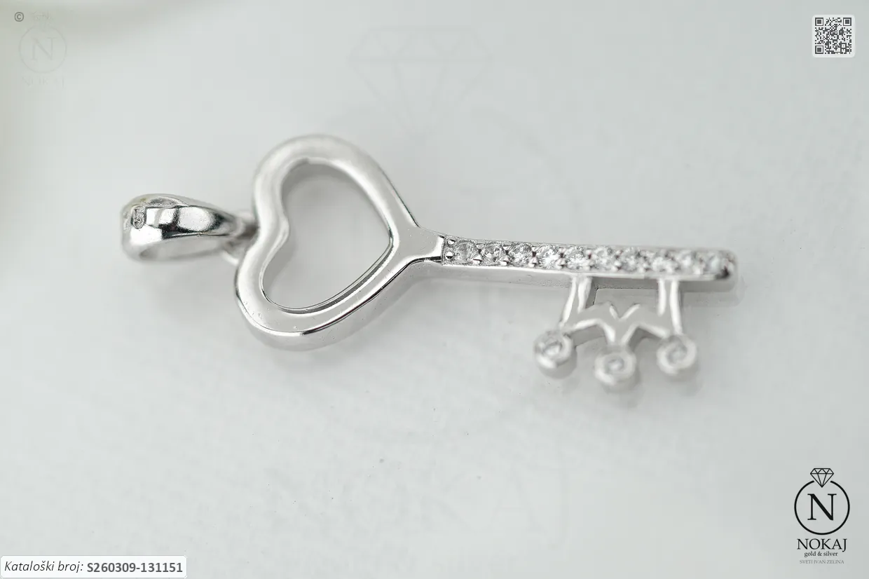 Srebrni privjesak finoće 925/1000, ukrašen cirkonima s motivom srca.