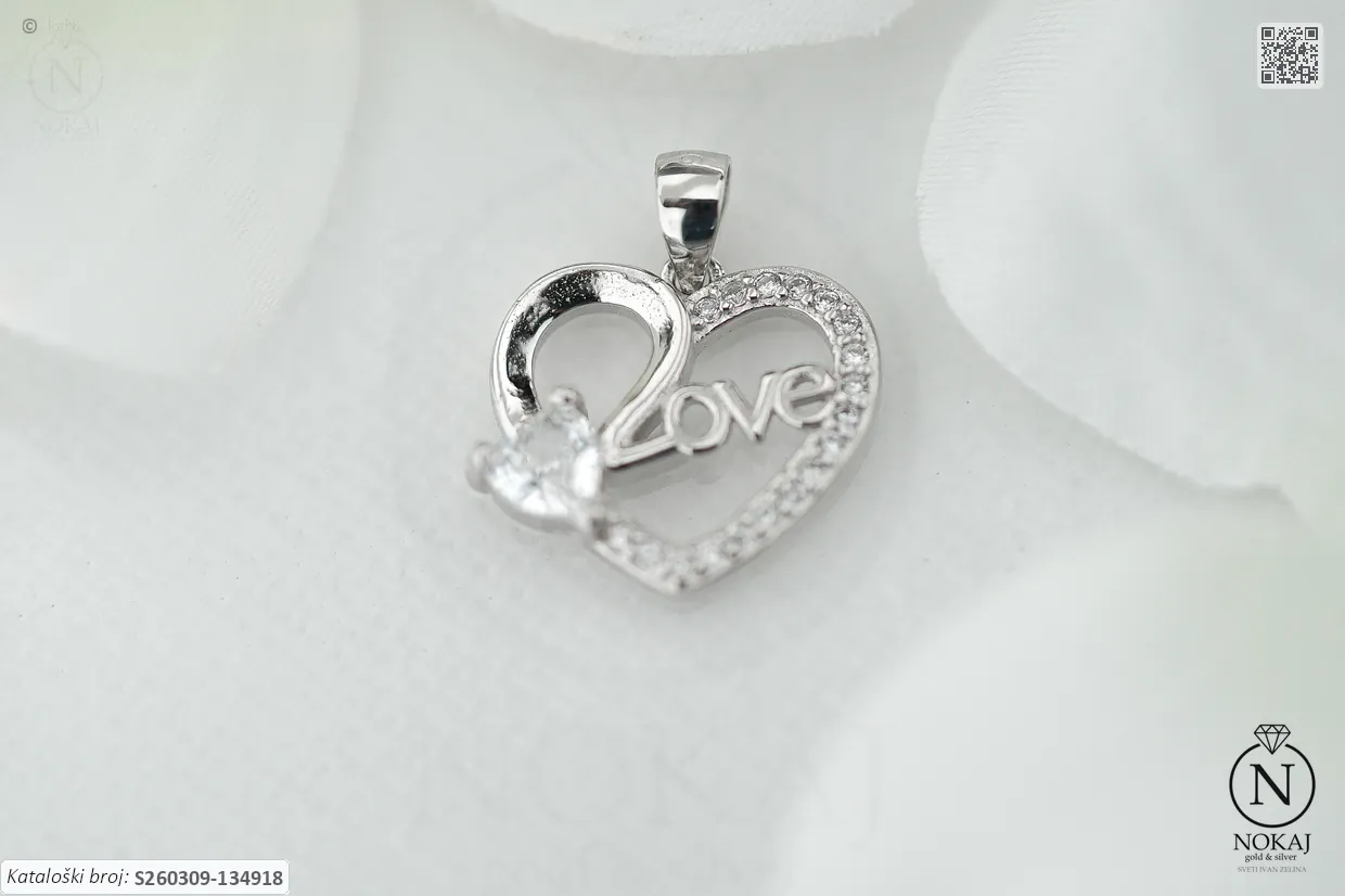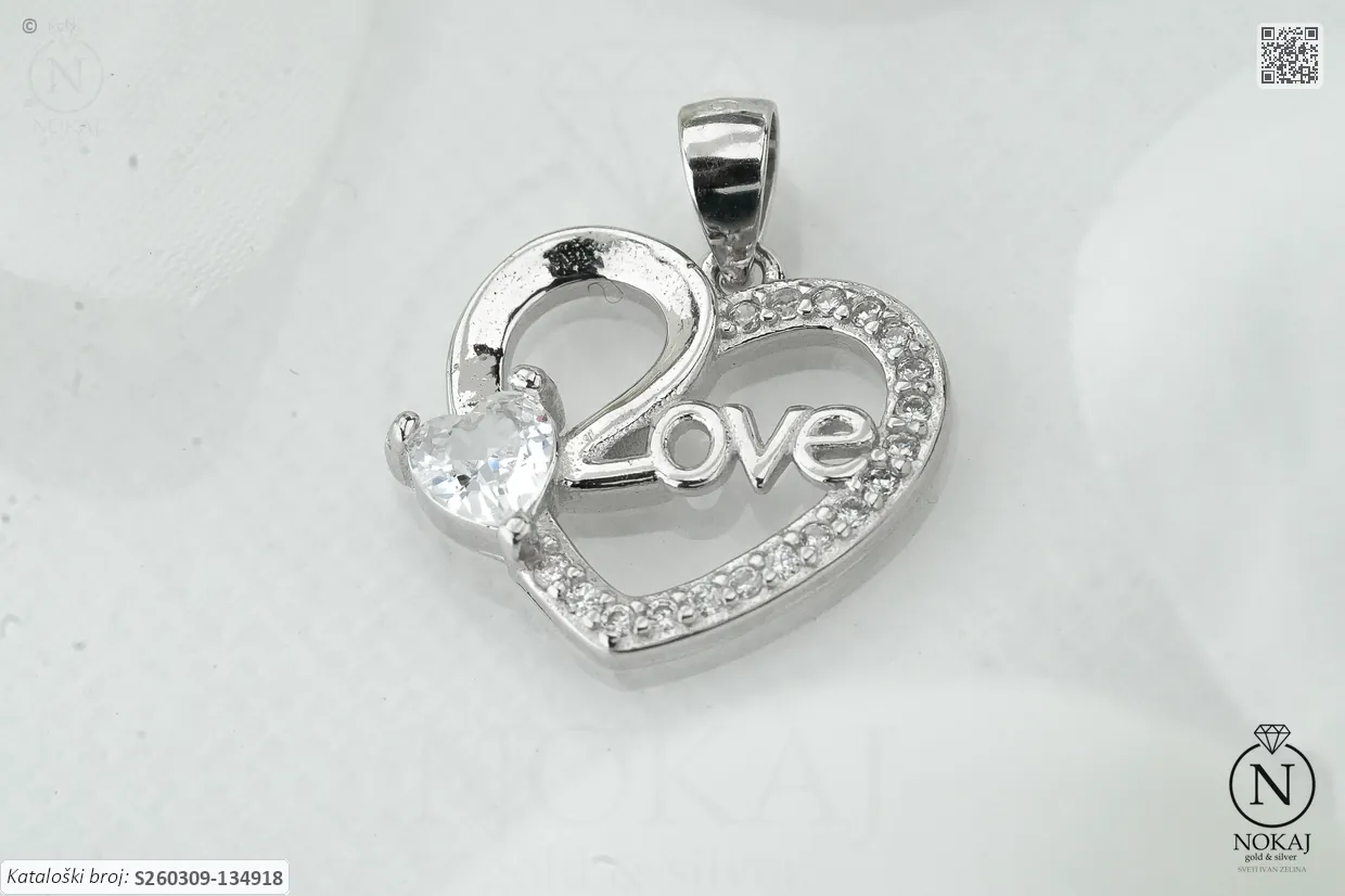Srebrni privjesak čistoće 925/1000, ukrašen cirkonima s motivom srca.