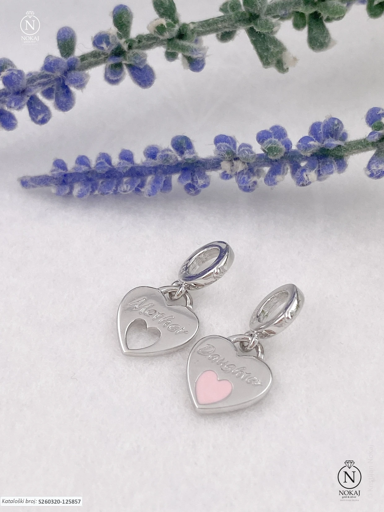Srebrni privjesak za narukvicu vrhunske finoće 925/1000, ukrašen cirkonima s motivom srca.
