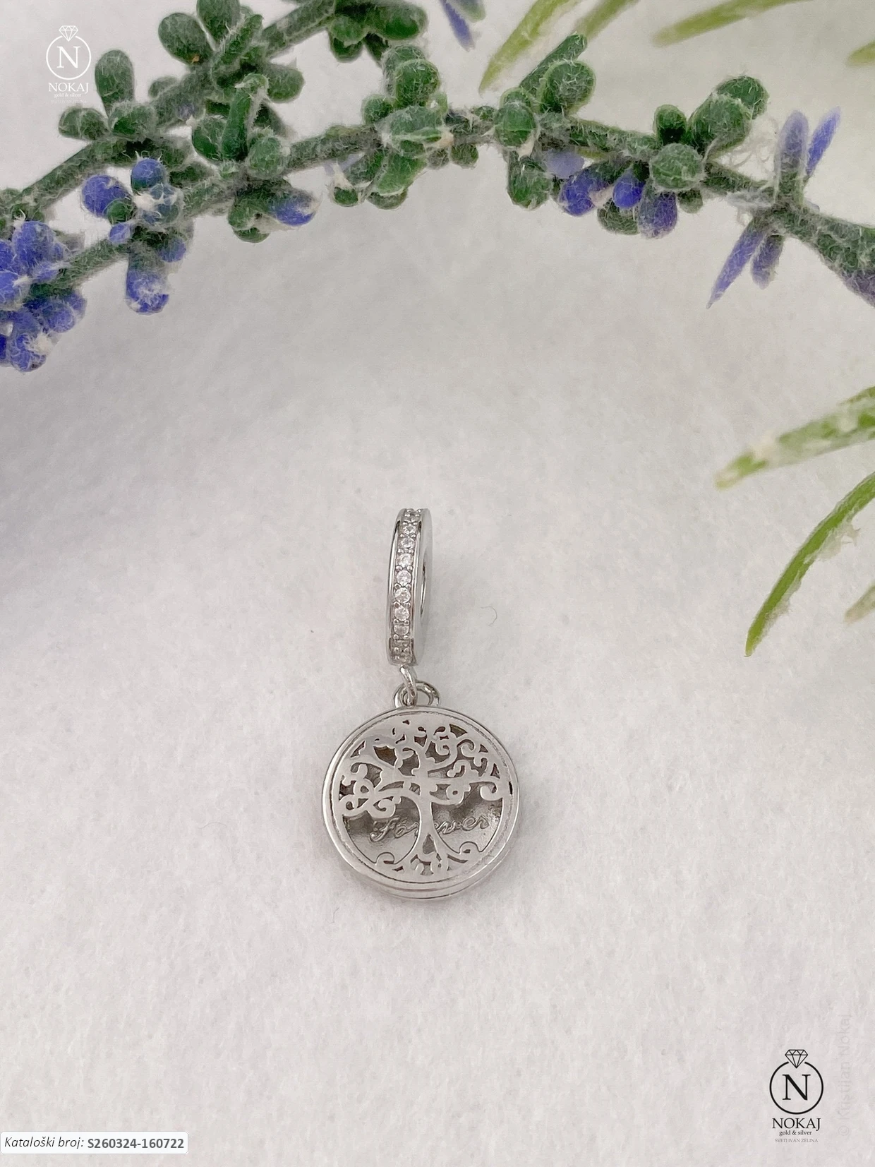 Srebrni privjesak finoće 925/1000, ukrašen cirkonima s motivom stabla života.
