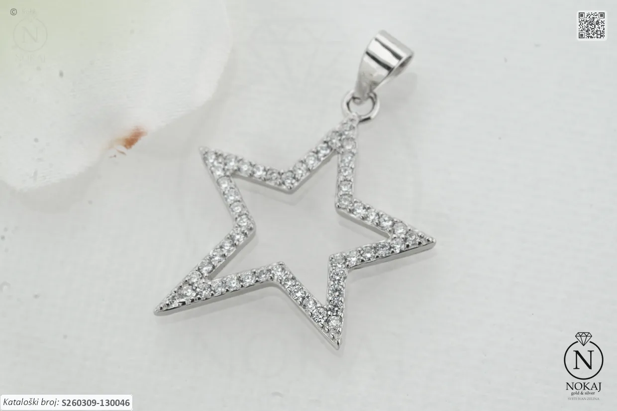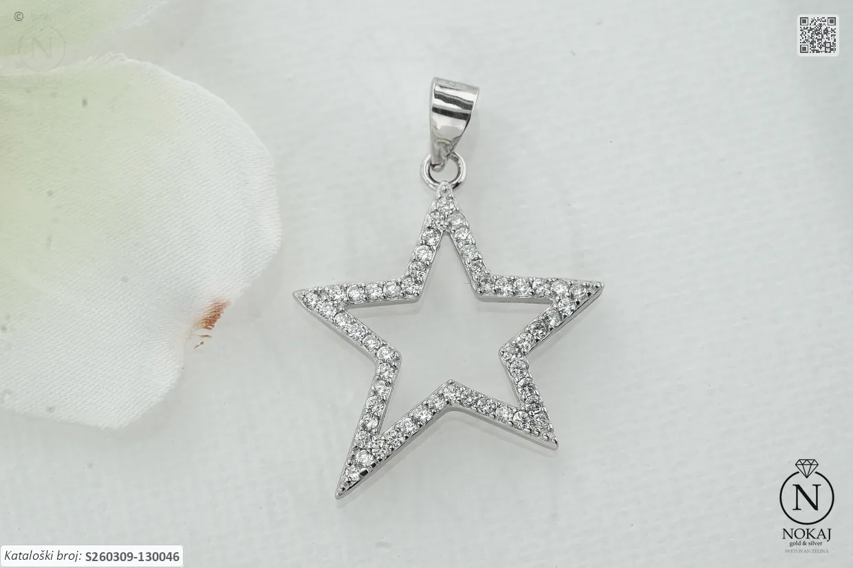 Srebrni privjesak čistoće 925/1000, ukrašen cirkonima s motivom zvijezde.