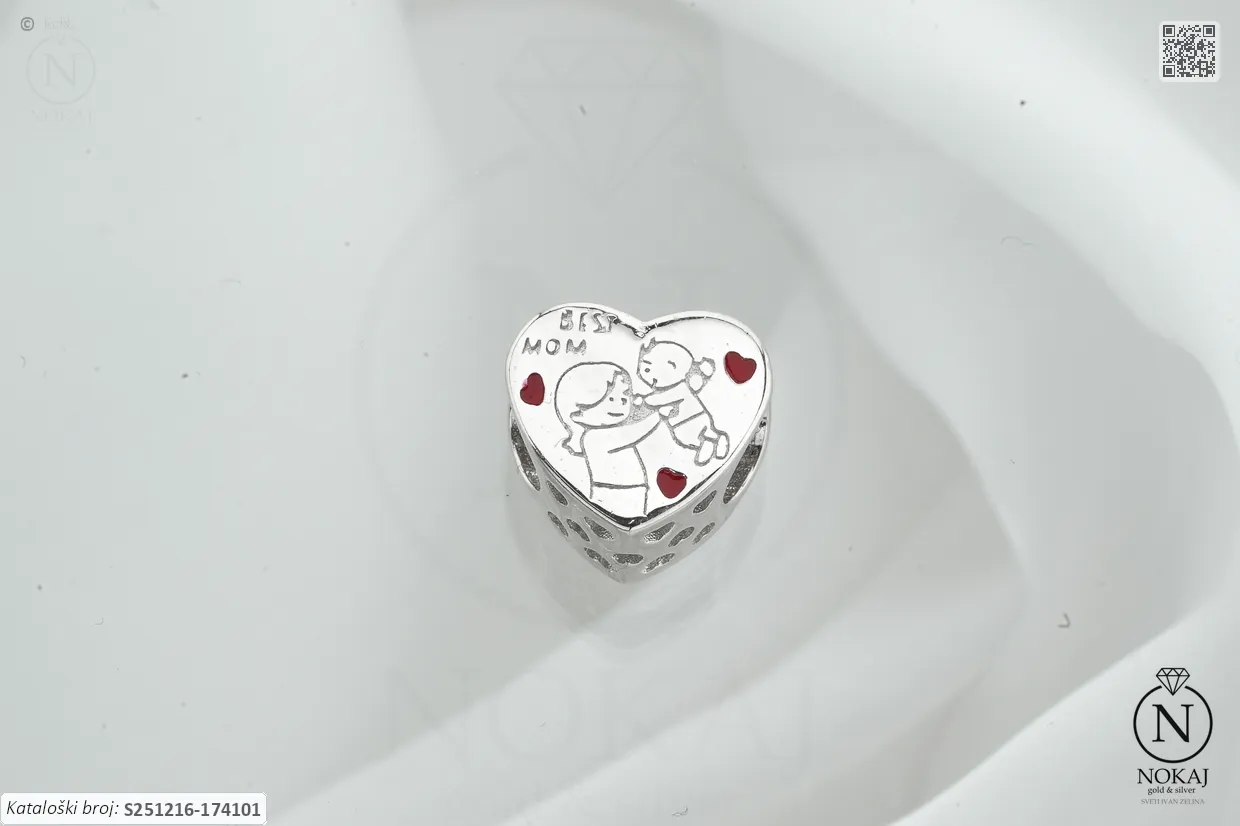 Srebrni privjesak čistoće 925/1000, ukrašen bezom s motivima srca i best mom.