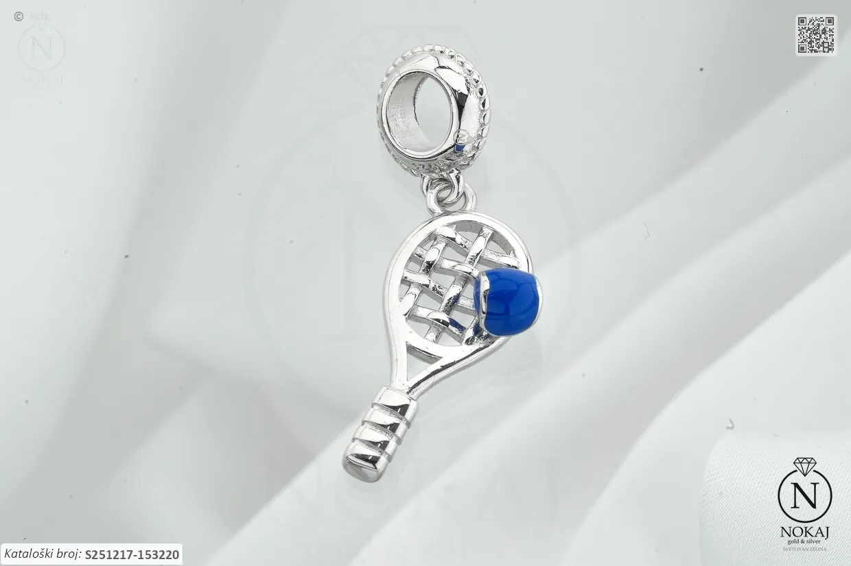 Srebrni privjesak finoće 925/1000, ukrašen bezom s motivom tenis plavi.