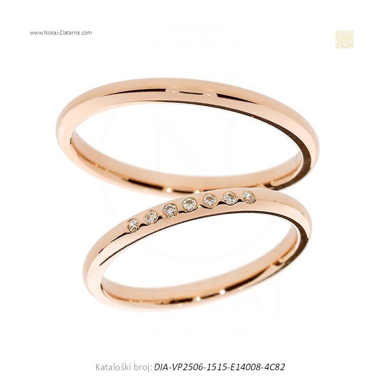 Vjenčano prstenje s naglaskom na nenametljivu eleganciju. Nenametljiva privlačnost koja ostaje aktualna i neovisna o prolaznim trendovima. zlato čistoće 585/1000 osigurava vrhunsku kvalitetu. Boja materijala:Rozo zlato. Naglašen je s 7 x 💠 Dijamant 0,008 ct. Prirodni dijamant 0,008 ct. Osigurava nježan, ali uočljiv sjaj. Čistoća i boja: Čistoće 🔹SI (mala unutarnja uključenja) i boje 🔹G (skoro bezbojan, s blagim tragovima boje koji su nevidljivi golim okom, što dijamant čini vrlo cijenjenim). Oblik: Okrugli briljantni rez (🔹Round) je najpopularniji oblik dijamanta, poznat po svojoj vrhunskoj briljantnosti i maksimalnom sjaju.