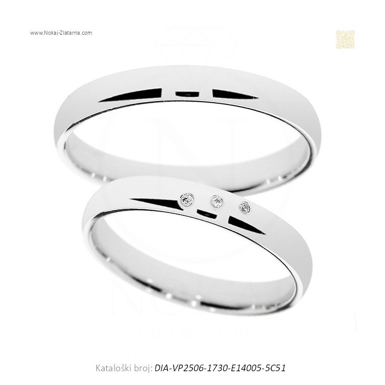 Vjenčano prstenje koje spaja modernu jasnoću i tradicionalnu simboliku. Nenametljiva privlačnost koja ostaje aktualna i neovisna o prolaznim trendovima. Nakit izrađen od visokokvalitetnog zlata čistoće 585/1000. Boja materijala:Bijelo zlato. Dragocjenost ovog nakita je 3 x 💠 Dijamant 0,005 ct. Sitni prirodni dijamant 0,005 ct. Pruža diskretan, ali blistav sjaj. Čistoća i boja: Čistoće 🔹SI (mala unutarnja uključenja) i boje 🔹G (skoro bezbojan, s blagim tragovima boje koji su nevidljivi golim okom, što dijamant čini vrlo cijenjenim). Oblik: Okrugli briljantni rez (🔹Round) je najpopularniji oblik dijamanta, poznat po svojoj vrhunskoj briljantnosti i maksimalnom sjaju.
